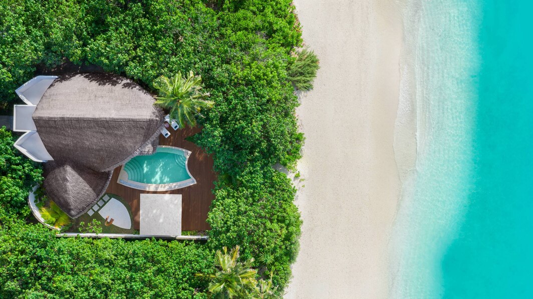 Двухэтажная пляжная вилла, 2 спальни: двуспальная кровать king-size или 2 односпальные кровати, отдельная гостиная комната, гардеробная, 3 ванные комнаты, терраса, персональный бассейн, душ под открытым небом, прямой выход на пляж, см. фото, фото-схема номера 1 этаж, фото-схема номера 2 этаж.