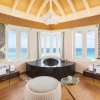 Двухэтажная водная вилла, спальня с двуспальной кроватью king-size, кушеткой и креслами на первом этаже, гостиная комната на втором этаже, гардеробная, ванная комната с ванной и душем, терраса, душ под открытым небом, персональный бассейн, спуск в воду, см.фото, фото-схема номера, фото-схема 1 этажа;
