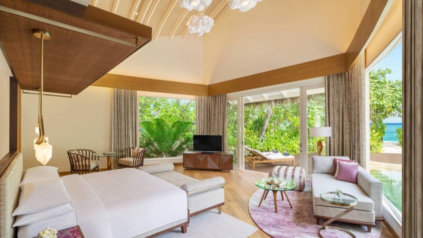 JW Marriott Maldives Resort & Spa – отель на зелёном острове в атолле Шавияни, подходит как семьям с детьми, так и парам, ищущим спокойного романтического отдыха. Для детей работает детский клуб с русскоговорящим персоналом, для взрослых есть спа-центр, лаунж и бассейн 18+. Все виллы отеля, пляжные и водные, дополнены собственными бассейнами. Отдых в отеле станет настоящим гастрономическим приключением: в отеле 5 ресторанов, 3 бара и винная комната.