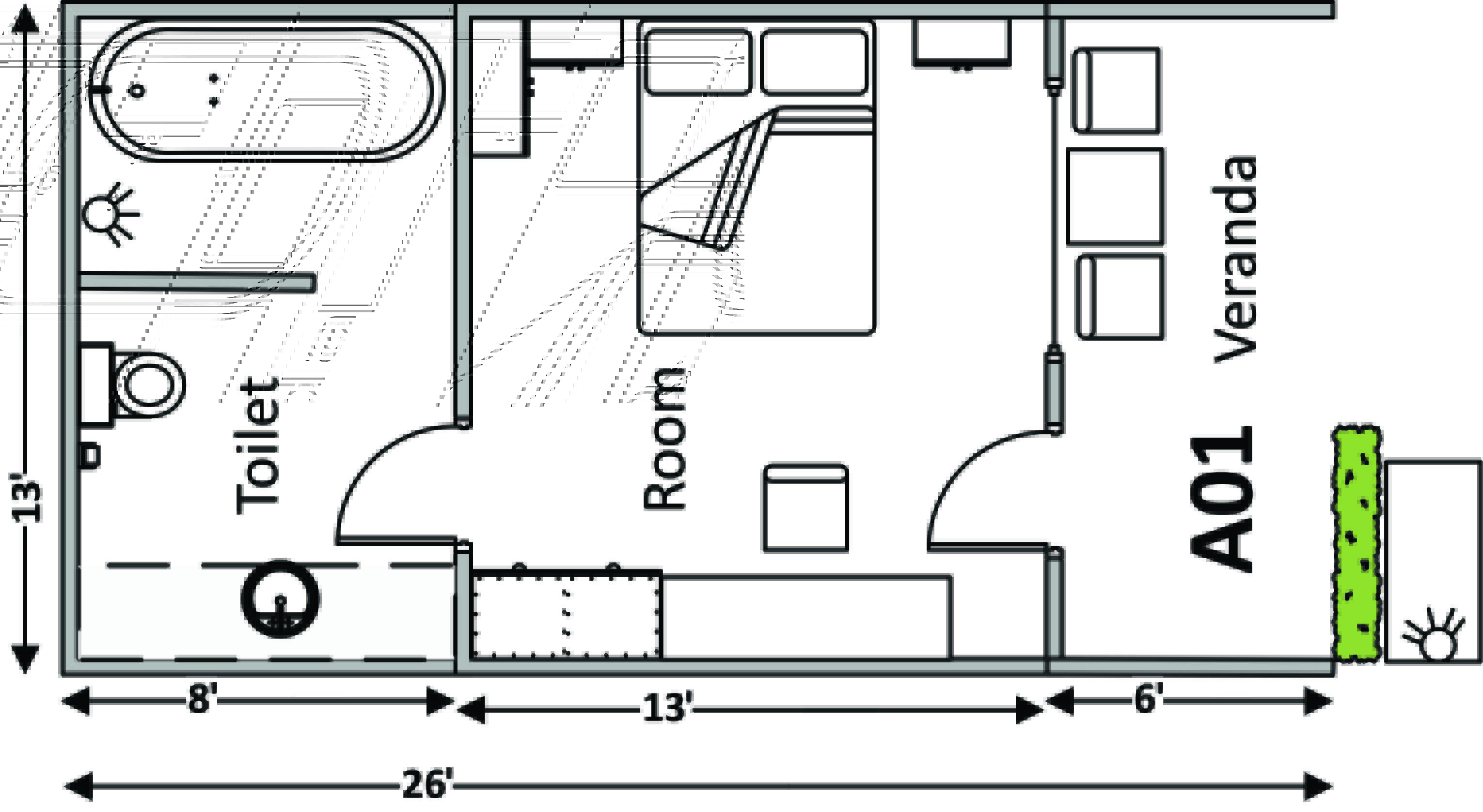 В номерах: потолочный вентилятор, чайник, набор для приготовления чая/кофе, сейф, мини-бар, кондиционер, шторы black-out, банные принадлежности, фен, зонт, утюг (по запросу).