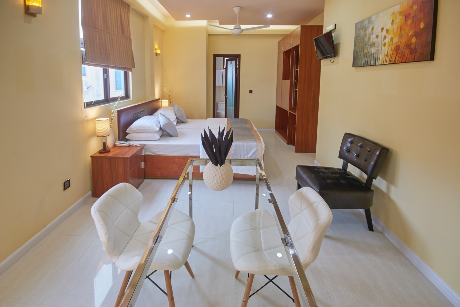 В номерах: бесплатный Wi-Fi, телефон, телевизор со спутниковыми каналами, кондиционер, вентилятор, собственная ванная комната, горячая и холодная вода, косметические принадлежности, фен, чайник (по запросу), ежедневная уборка.