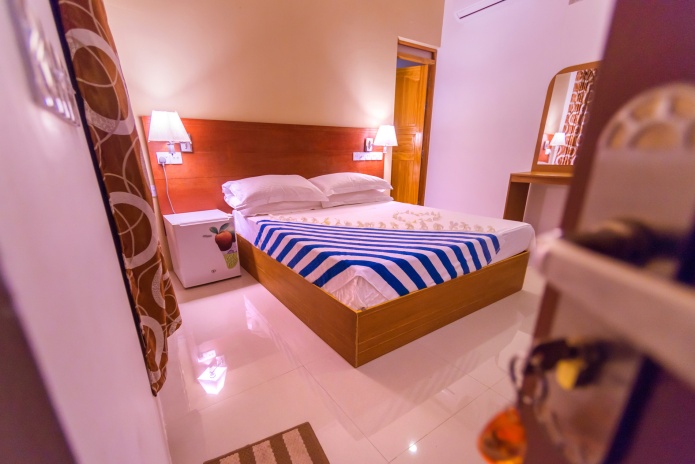 • Deluxe Double Room (26 кв.м). Просторный номер, в котором можно разместить до 4 гостей. В номере: кровать king-size, кафельный пол, потолочный вентилятор, кондиционер, телевизор, столик, шкаф, холодильник, чайник, собственная ванная комната с косметическими принадлежностями, полотенца.