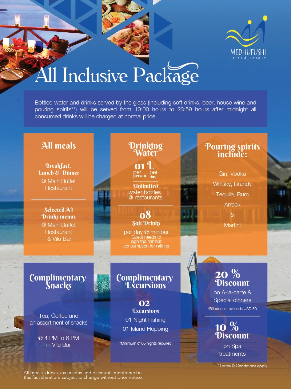 Новость от 26.11.2025: с открытием внутреннего аэропорта на соседнем острове Мули стал доступен третий вариант трансфера между аэропортом Велана и курортом Medhufushi — внутренний авиаперелёт. Трансфер включает перелёт между аэропортом Велана и Мули продолжительностью около 45 минут, после чего следует 10-минутная поездка на лодке до курорта Medhufushi.