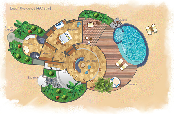 В отеле 50 номеров (47 вилл и 3 резиденции):