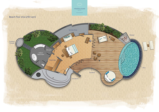 Размер острова: 300 м x 180 м, площадь 5,4 га. Отель принимает детей в возрасте от 8 лет и старше.