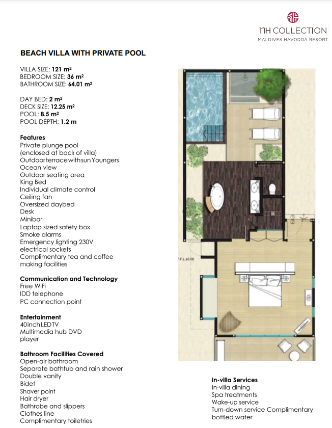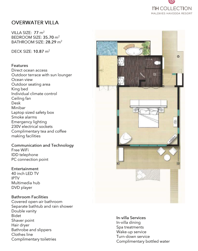 Отель NH Collection Maldives Havodda Resort (ex. Amari Havodda Maldives) – это расслабляющая атмосфера, приветливый персонал, отличное питание, интересный коралловый риф и просторные комфортабельные номера. Рекомендуем для туристов, планирующих отдых в спокойной атмосфере.