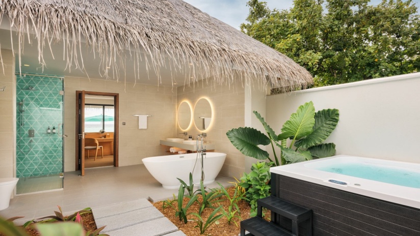 - 4 номера Beach Villa with Jacuzzi Inter-Connected (160 м², макс. 5 чел.).