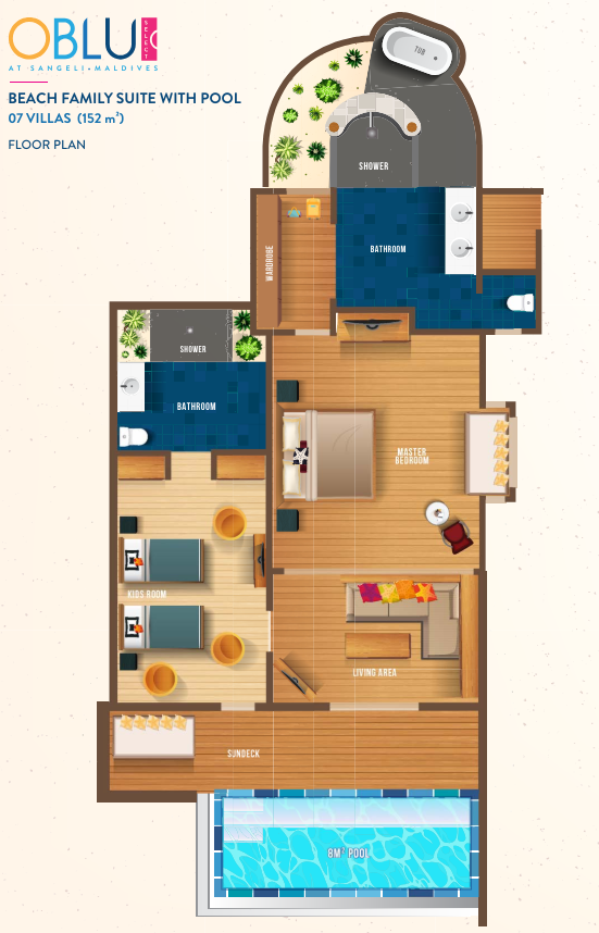 - 7 номеров 2 Bedrooms Beach Suite with Pool/ 2 Bedroom Beach Pool Suite (158 м², макс. 4+2 или 3+3).