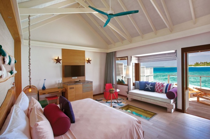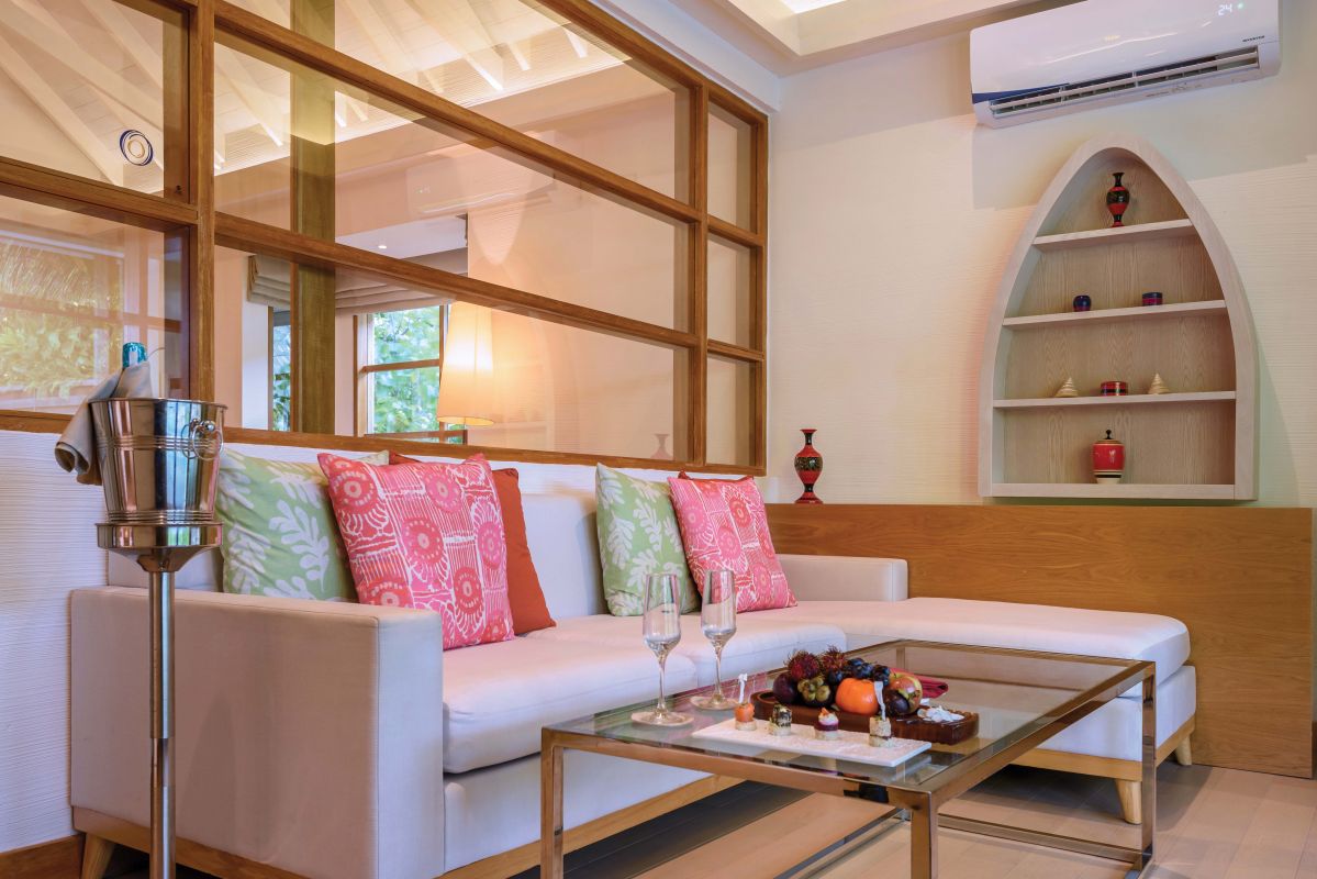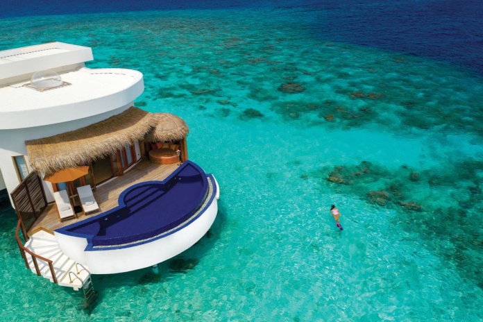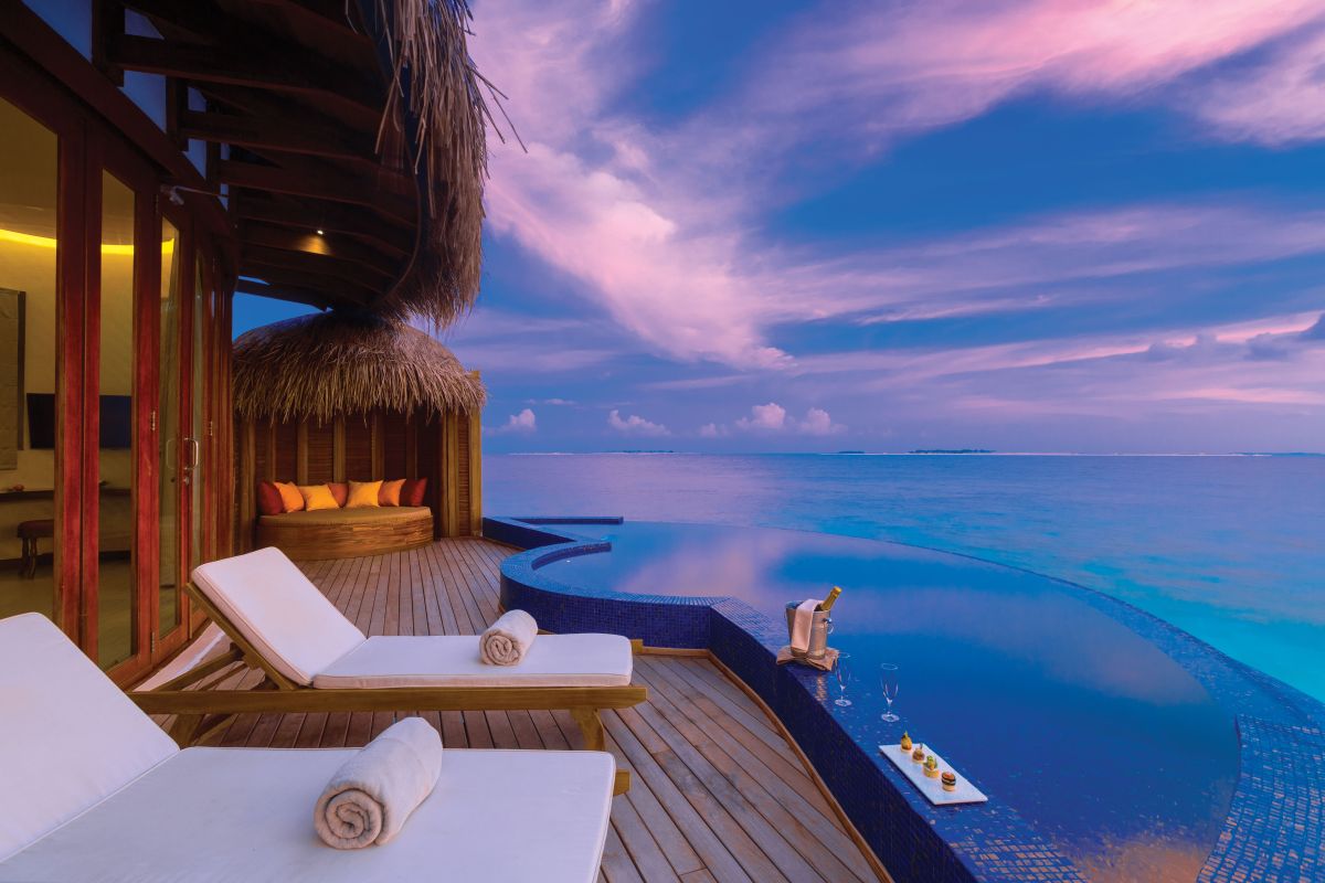 Номера только для взрослых, расположены рядом с островом One Banyan, на сваях над водой, круглая двуспальная кровать (диаметр 220 см), гардеробная, ванная комната с круглой ванной и душ под открытым небом, терраса, открытый персональный бассейн в форме полумесяца (13 м²), вид на океан. Дополнительные привилегии: check-in в номере, приветственная бутылка шампанского, канапе и тарелка фруктов по прибытии, бесплатное посещение 2-х ресторанов à la carte в течение отдыха (на обед и ужин), подготовка номера ко сну (ежедневно), услуги батлера, индивидуальный багги, завтрак на вилле (один раз в течение всего пребывания), при проживании от 4 ночей и более – один массаж для пары в течение отдыха, см.брошюру, см. план номера. Виллы развернуты на юго-запад и имеют инфинити бассейн в форме полумесяца, хорошая глубина для плавания, рядом небольшой участок рифа;