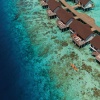 Расположены на сваях над водой, двуспальная кровать king-size, ванная комната с ванной и душем, терраса, прямой спуск в воду, вид на океан, см.план номера. Виллы без бассейна развернуты в сторону восхода, на горизонте нет других островов, хорошая глубина, рядом риф, есть течение, натянут канат для страховки, плавать лучше в ластах или тапочках коралках;