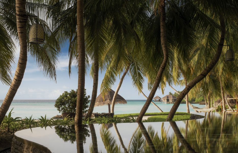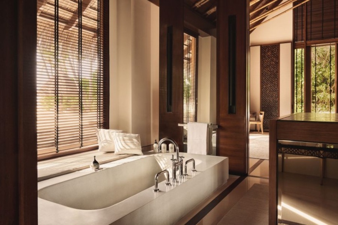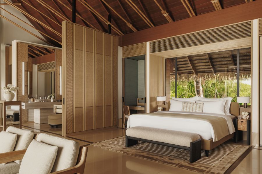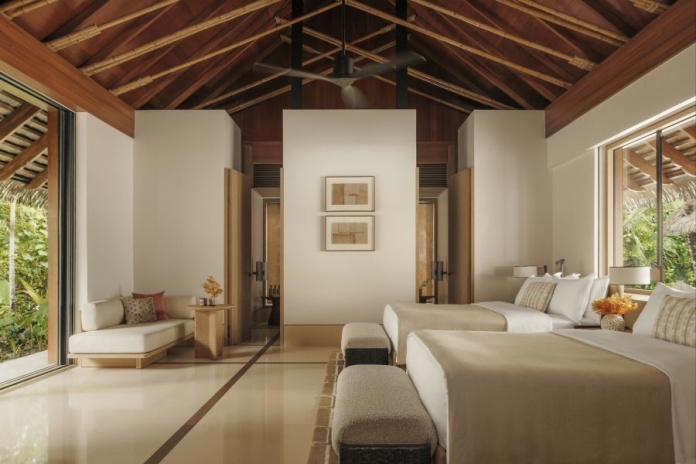 Две отдельно стоящие виллы, соединенные частным пляжем и бассейном (площадь бассейна 23 м²), 2 спальни: двуспальная кровать king-size и 2 двуспальные кровати queen-size, в каждом спальне гостиная зона с креслами, 2 ванные комнаты с ванной и душем, 2 террасы, прямой выход на пляж и вид на океан, см.план номера;