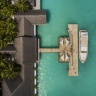 Расположены на сваях над водой на западной стороне острова, спальня с двуспальной кроватью king-size, отдельная гостиная комната с диваном и обеденным столом, ванная комната с ванной и душем, гамаки над водой, меблированная терраса с пляжной беседкой, персональный 20-метровый пейзажный бассейн, джакузи под открытым небом, вид на океан, прямой спуск в воду, см.план номера;