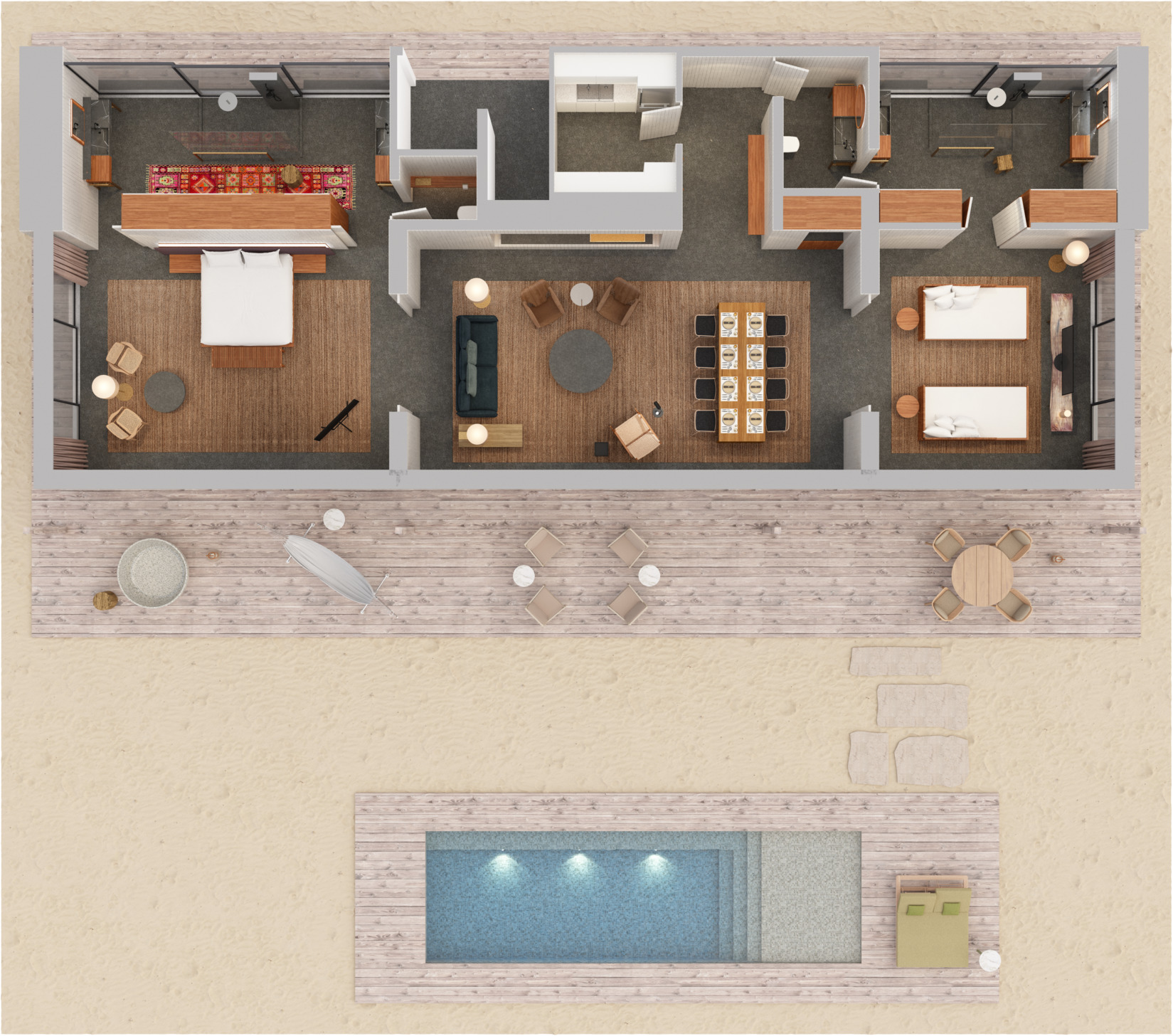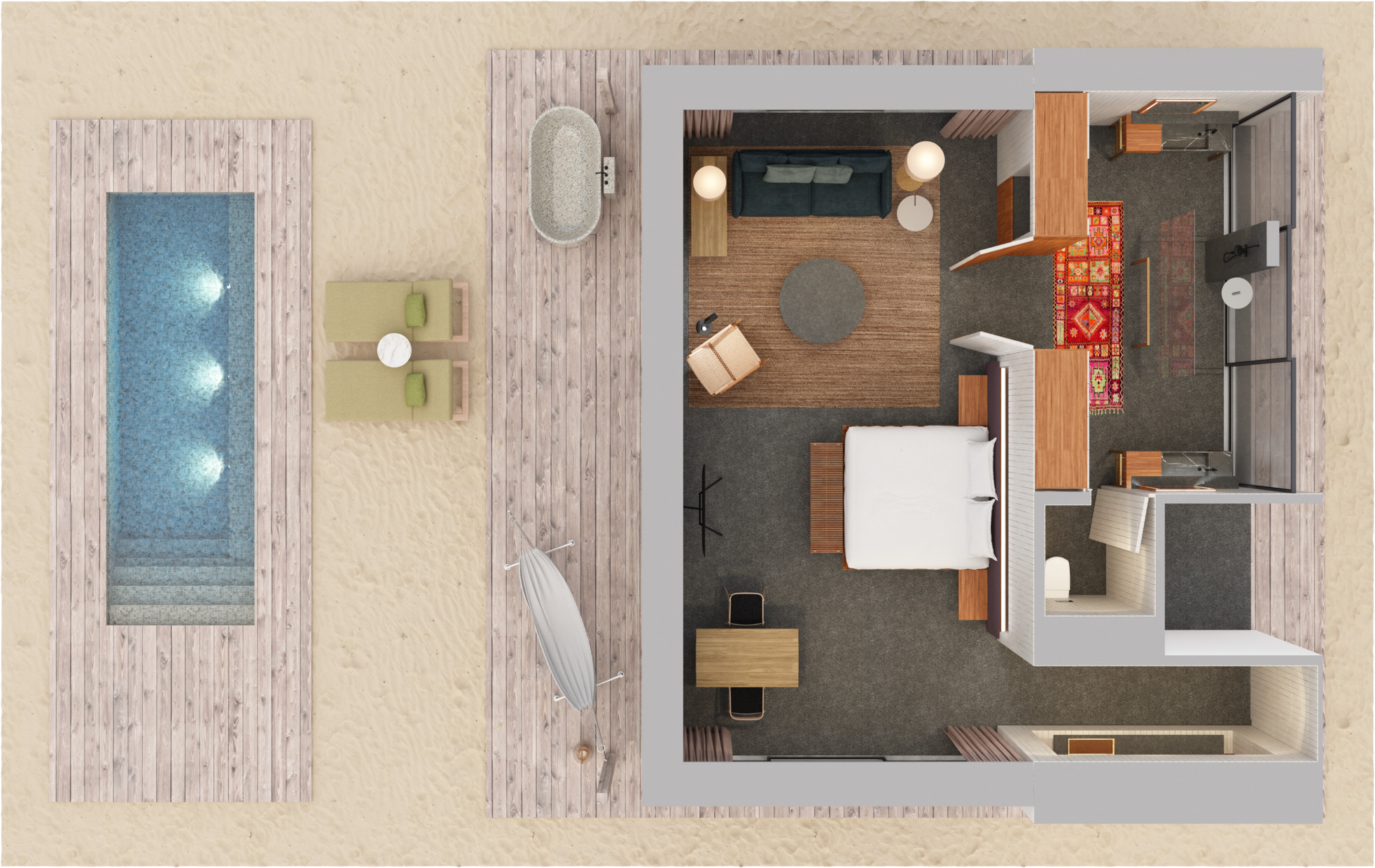 Курорт спроектирован бразильским архитектором Marcio Kogan с заботой об уникальной природе Мальдив.