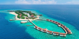Водная вилла с одной двуспальной кроватью king-size, диваном-кушеткой в нише, ванной комнатой с ванной и душем и летним тропическим душем, открытой террасой для загара с надводным гамаком и прямым спуском в воду, см.план номера;