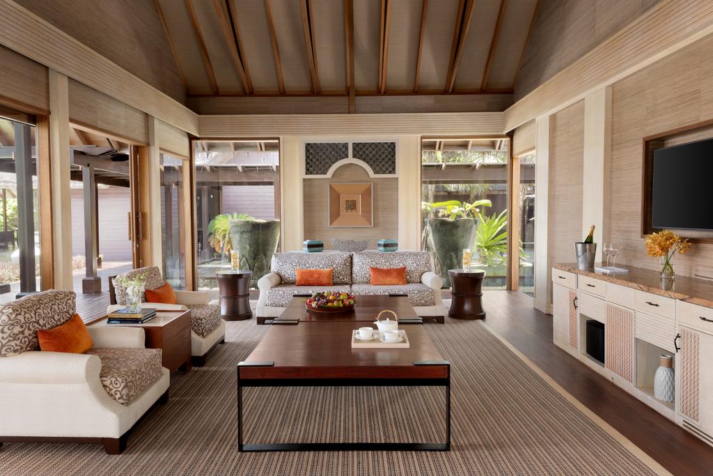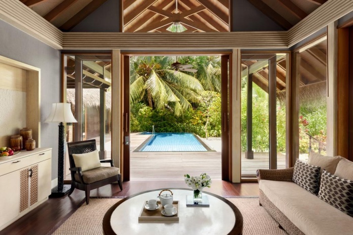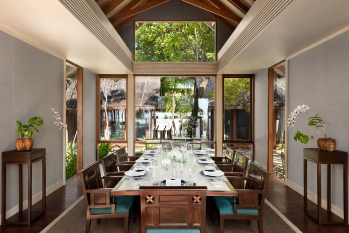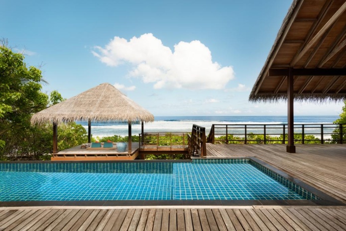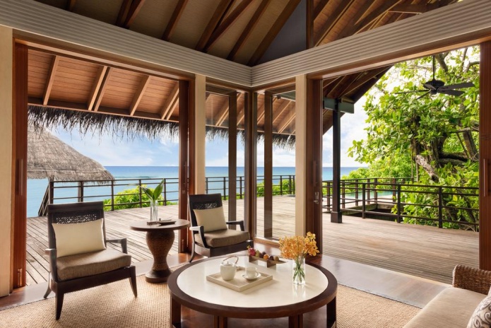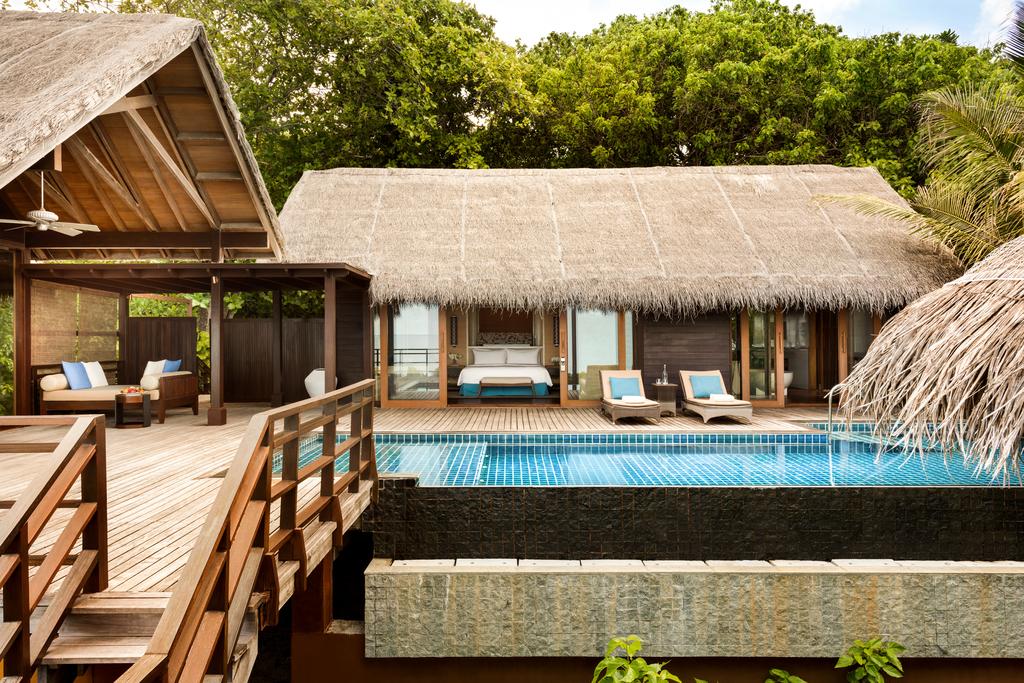 • Grand Ocean View Villa Laalu with Private Pool (957 м2, уникальная и самая роскошная вилла отеля 472 м2, украшена артефактами и скульптурами из Индонезии, Шри-Ланки и Таиланда. 2 спальни с высокими потолками, гостиная, открытые веранды и обеденные павильоны; ванная комната на открытом воздухе с большой ванной для двоих; спа-павильон, сауна, фитнес-зал, кабинет, спальня для персонала или охраны, круглосуточный сервис Villa Host, макс. 6 или 4+2 чел.)