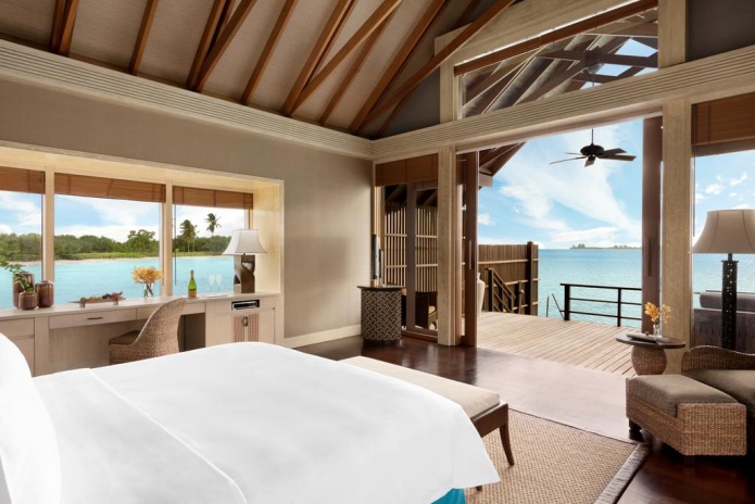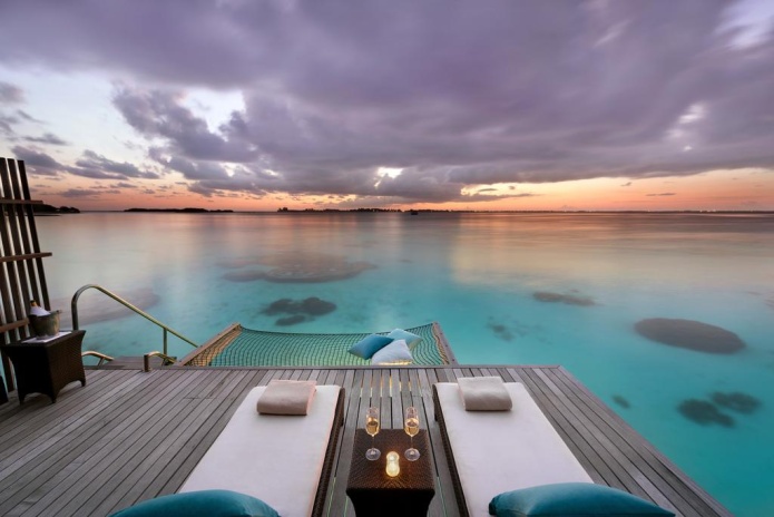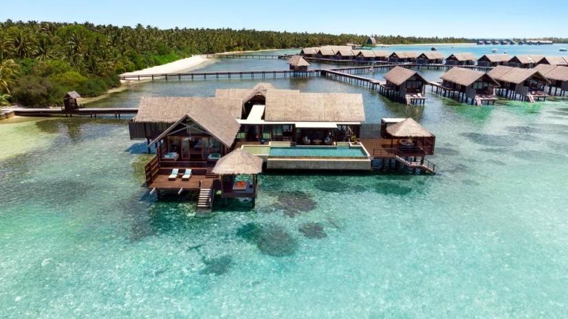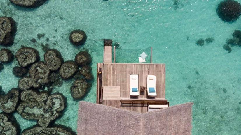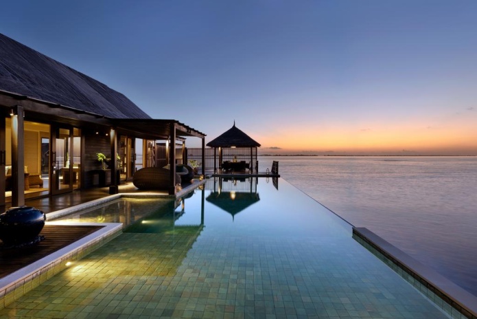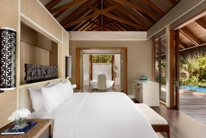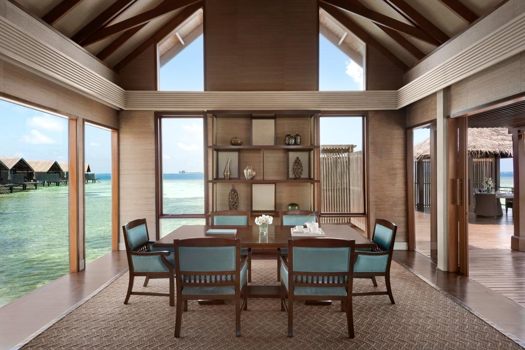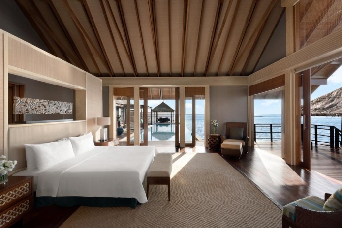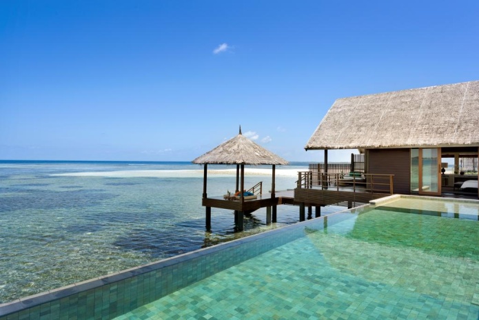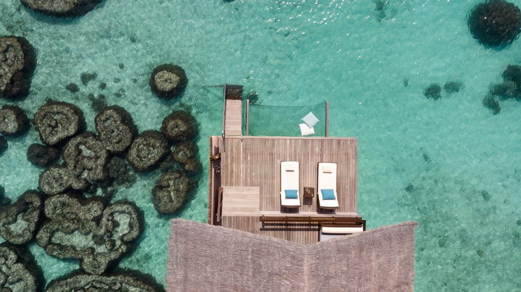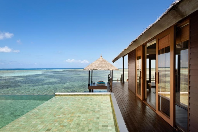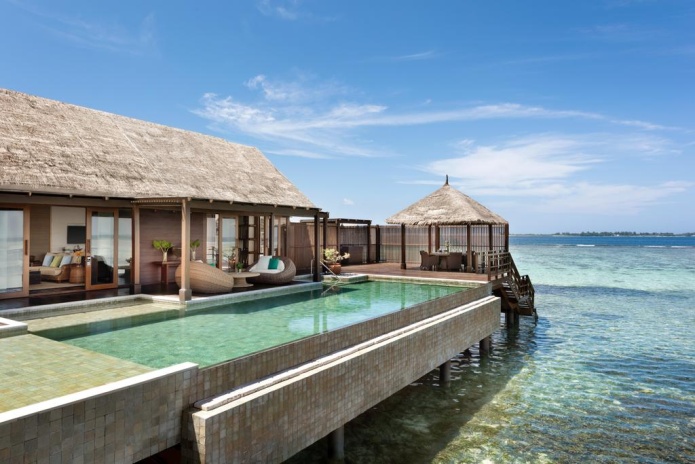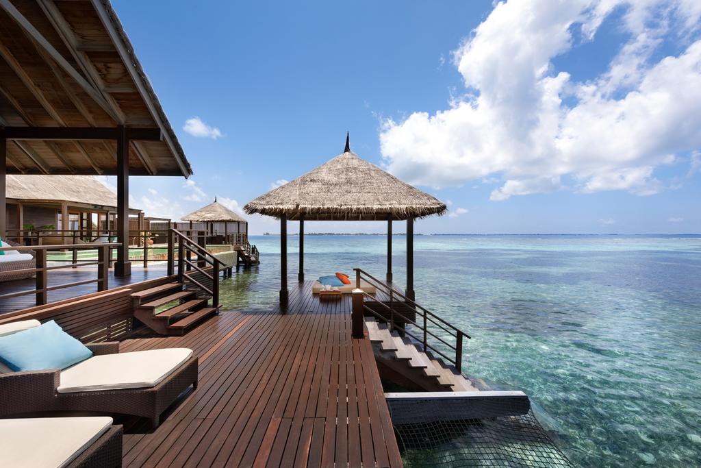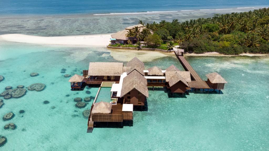 • Grand Water Villa Muthee with Private Pool (570 м2, уникальная надводная вилла 275 м2, оформленная в восточном стиле с применением тикового дерева и перламутра: cпальня, гостиная, ванная комната с гардеробной, спа-павильон, бассейн 16 м2, макс. 3 или 2+2 чел.)