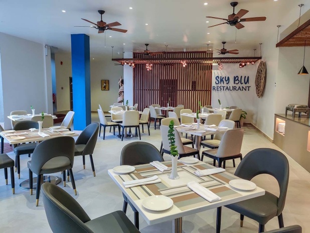 • ресторан Sky Blu предлагает блюда как по меню, так и в виде «шведского стола» (местная и международная кухни);