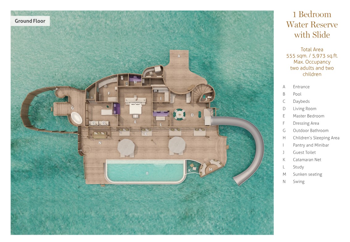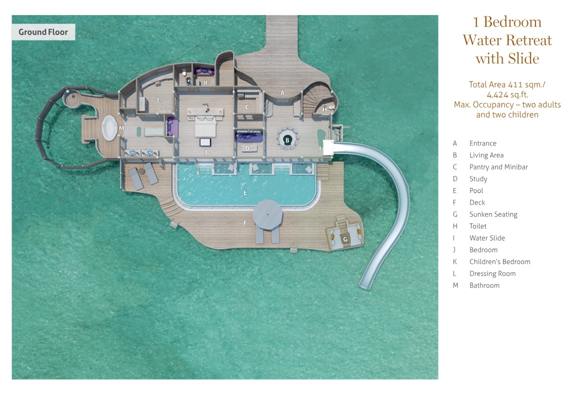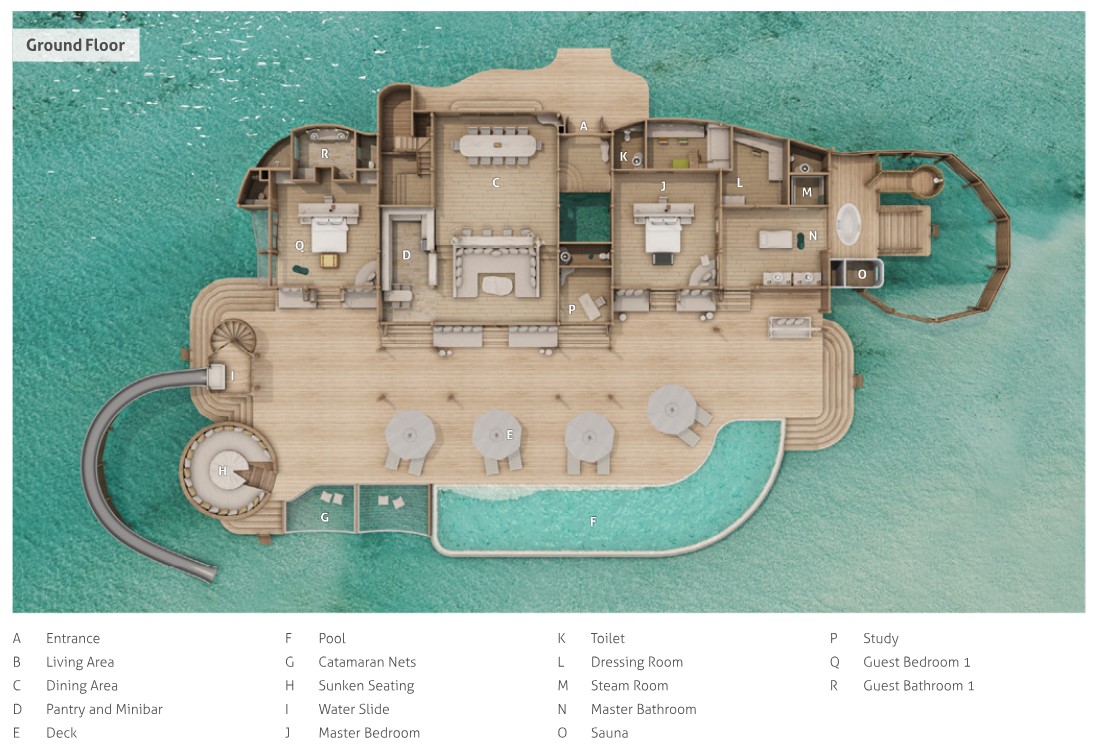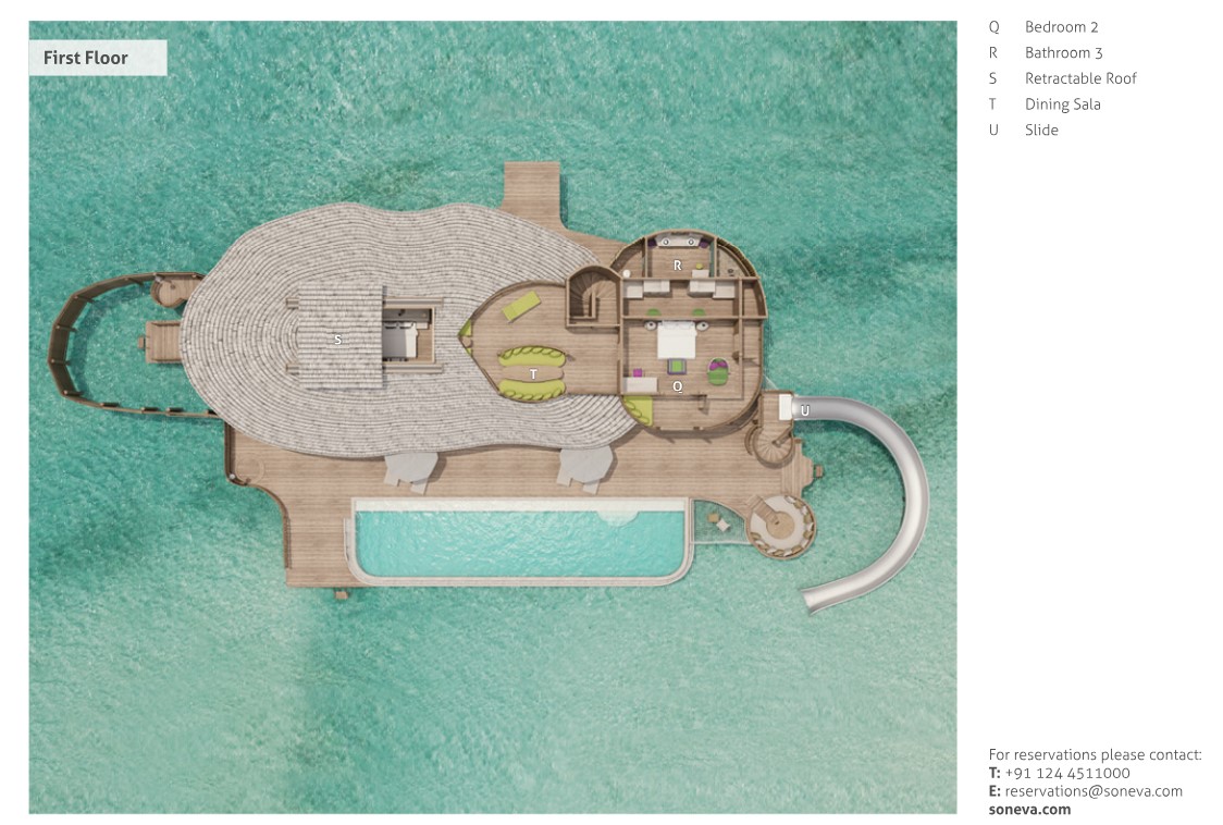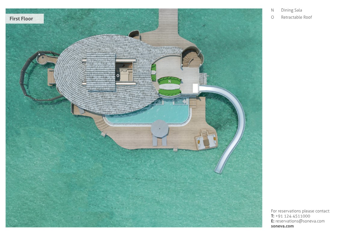 Soneva Jani − это роскошный курорт на Мальдивах, расположенный на частном архипелаге в лагуне Медхуфару, на атолле Ноону. Курорт славится своими уникальными виллами на воде и островными виллами, каждая из которых предлагает великолепные виды на Индийский океан. Главная особенность многих вилл — это раздвижные крыши над спальнями, которые позволяют гостям наслаждаться видом на звездное небо прямо из своей кровати. На курорте Soneva Jani 59 вилл: 51 водная и 8 пляжных.