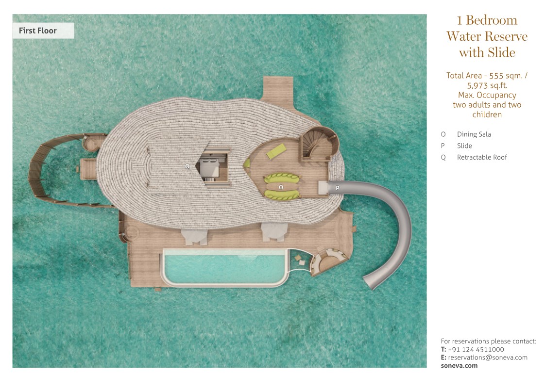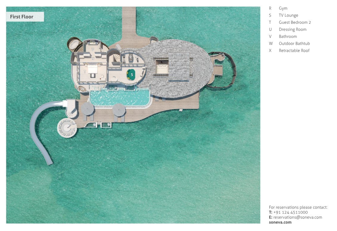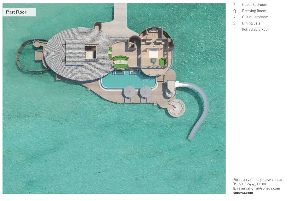 ∗ в международный аэропорт Маафару на атолле Ноону (самолёт вмещает от 37 до 50 пассажиров), а затем 15-минутная поездка на катере до Soneva Jani;