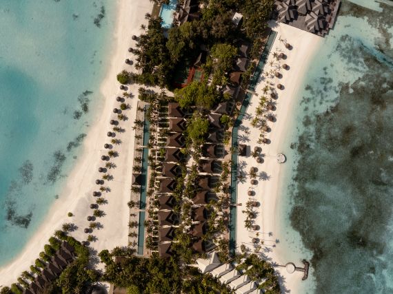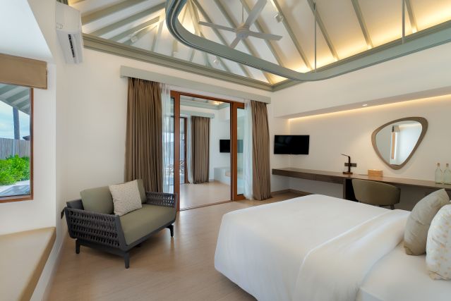 • 32 номера Deluxe Water Villa (82 м², макс. 3 или 2+1).