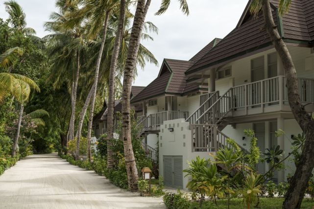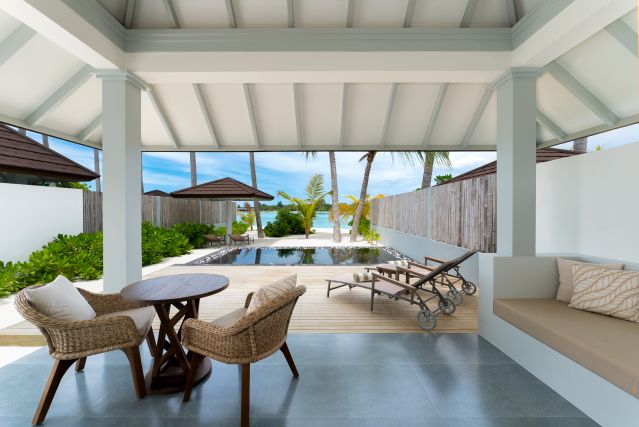 Расположены в двухэтажных павильонах с четырьмя номерами в каждом. Номера на первом этаже —  смежные номера, где по запросу возможны две односпальные кровати; на верхнем этаже — с двуспальными кроватями king-size, ванная комната с душем, балкон или терраса, вид на восход солнца, доступ к бассейну для гостей номеров Beach Pavilion (длина бассейна – 135 м). Обращены к лагуне и имеют прямой доступ к пляжу, план номера, новинка 2025 года;