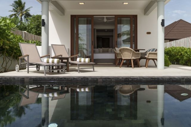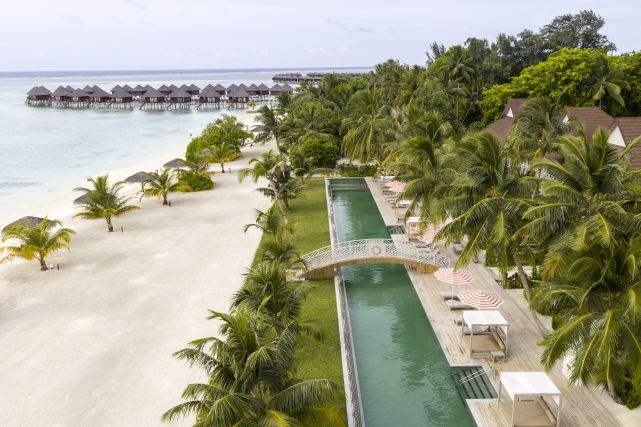 • Самый длинный бассейн на Мальдивах - 210 м для гостей Sunset Beach Pavilions.