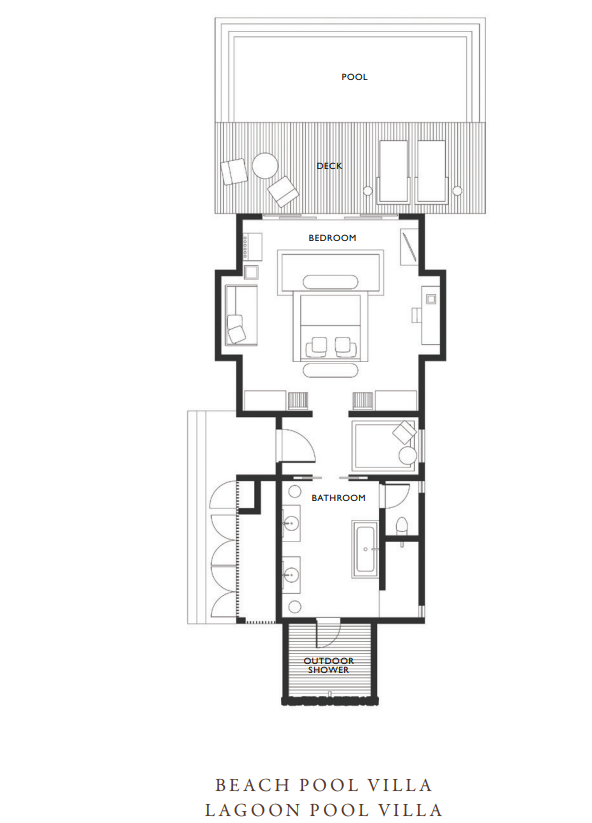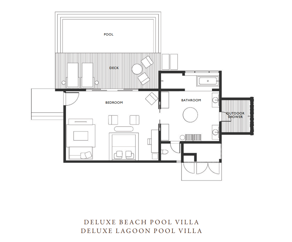 В отеле 173 номера (50 номеров Beach Pool Villa, 36 номеров Deluxe Beach Pool Villa, 54 номера Water Pool Villa, 8 номеров 2 Bedrooms Beach Villa with Pool, 4 номера 2 Bedroom Water Pool Villa):