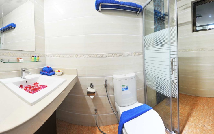 В номерах: собственная ванная комната c душем, косметические принадлежности, фен, кондиционер, вентилятор, холодильник, TV, спутниковые каналы, чайник, бутилированная вода, полотенца, вешалки для одежды, сейф, мини-бар (за доп.плату).