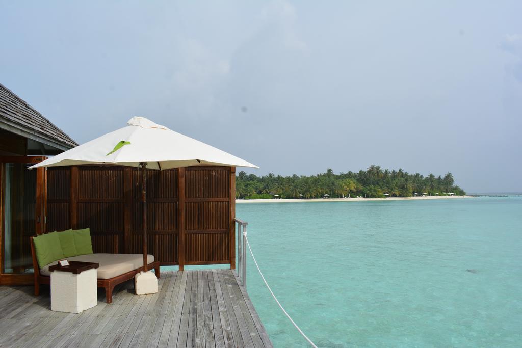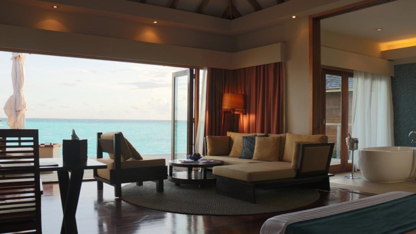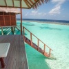 • Water Villa (144 м2, надводные виллы с видом на океан, просторная спальня и ванная комната, полное уединение, зона гостиной с диваном, терраса со спуском в воду, лежаками и душем на открытом воздухе, макс. 3 чел. Размещение с детьми младше 12 лет не разрешено!)