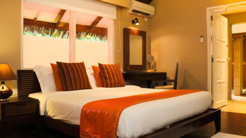 • Beach Villa (62 м2, отдельно стоящие береговые виллы с выходом на частный пляж, окружены тропическими садами, ванная комната частично на открытом воздухе, веранда с лежаками и стульями. Есть смежные номера, макс. 3 или 2+1 чел.)