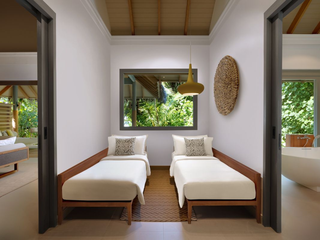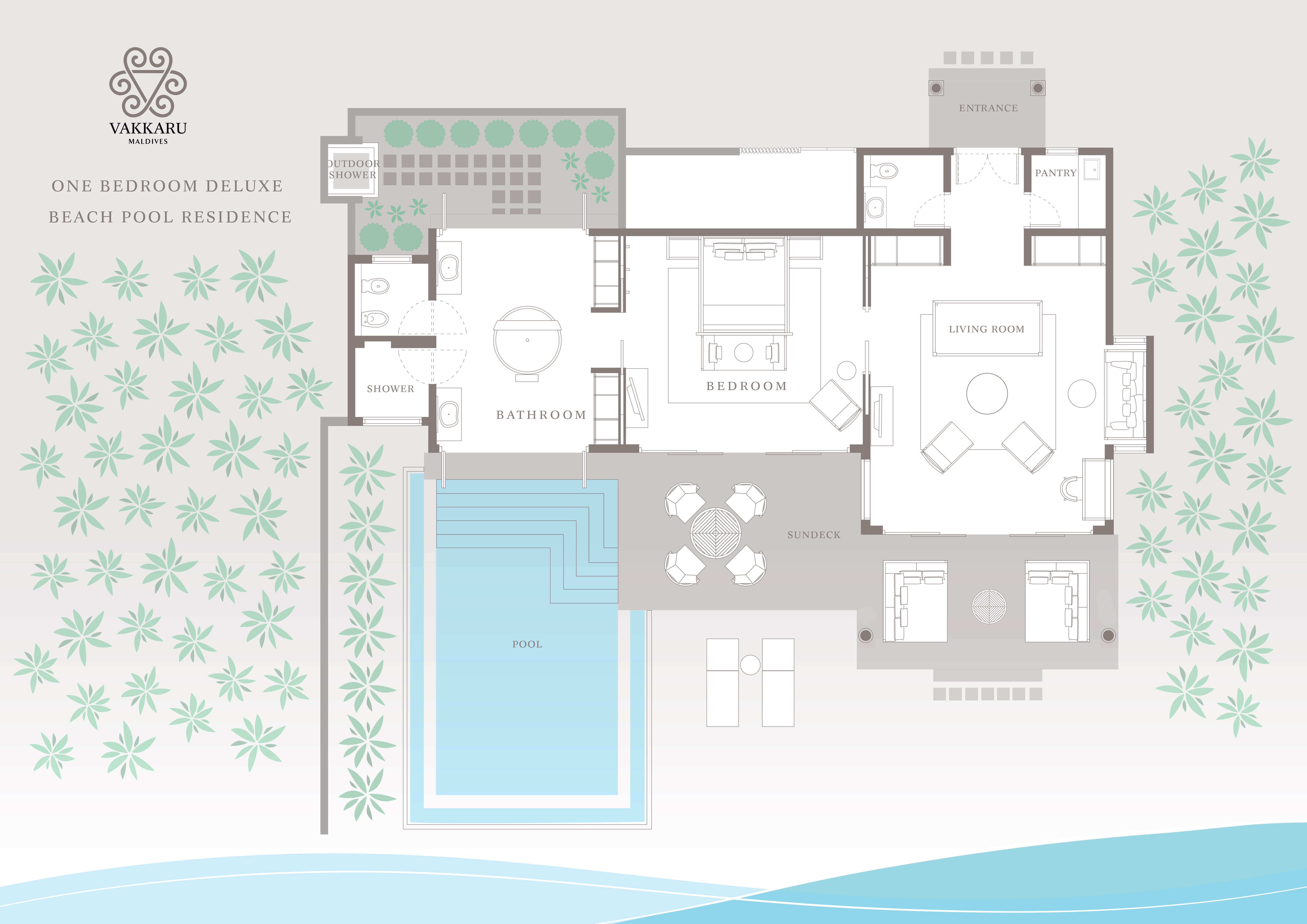 Расположены на пляже, спальня с двуспальной кроватью king-size, виллы располагают отдельной зоной отдыха, которая легко трансформируется в спальную зону для детей (2 дивана-кушетки), ванная комната с ванной и душем, гостевой туалет, меблированная терраса, открытый персональный бассейн (34 м²), душ на открытом воздухе, прямой выход на пляж, см. фото и план номера;