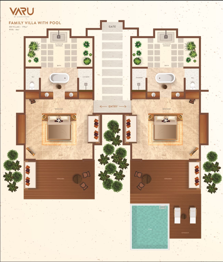 • 15 номеров Beach Villa with Pool (90 м², макс. 3 чел.).