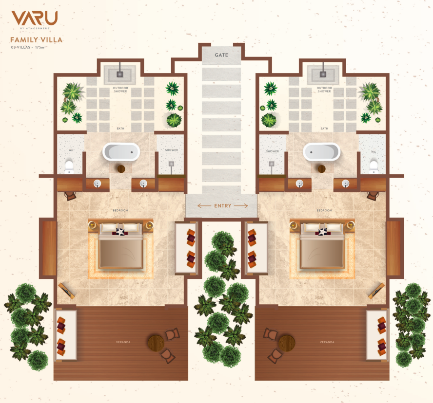 • 3 номера 2 Bedrooms Beach Villa (175 м², макс. 4+2).