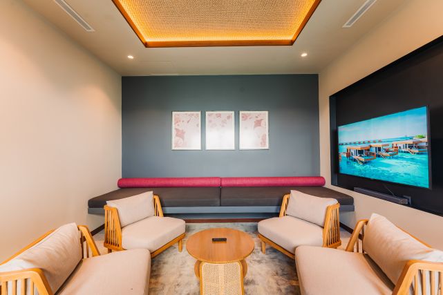 • трансфер на гидросамолете (полет занимает около 20 минут) от международного аэропорта Velana, есть зал ожидания в терминале гидросамолётов по прибытии на Мальдивы;