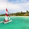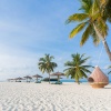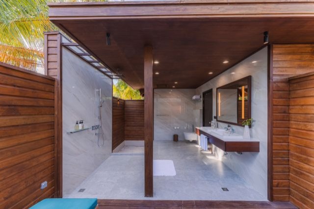 Пляжные виллы расположены в восточной и северной частях острова, вид на восход из вилл на восточной стороне и на запад у вилл, расположенных в северной частично открытая ванная комната с душем и ванной, прямой доступ к пляжу, см.план номера;