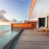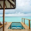 На сваях над водой, двуспальная кровать king-size, ванная комната с ванной и душем, терраса, небольшой персональный бассейн (размер бассейна 6,5 х 3 м), прямой доступ к домашнему рифу, вид на закат, стеклянная панель на полу у входа, см.план номера;