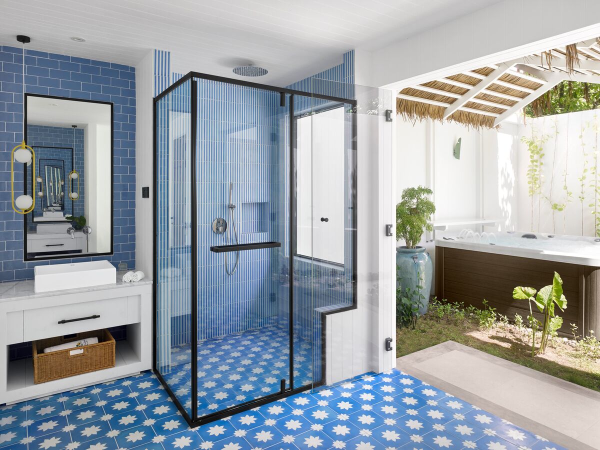 Смежные номера Sunset Deluxe Beach Villas. Новые виллы 2025 года с современным дизайном, прямым выходом к пляжу, террасой и тропическим душем.;