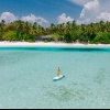 Двуспальная кровать, гостиная зона с креслами, ванная комната с душем и джакузи на свежем воздухе, меблированная терраса, частный бассейн, новая категория 2022 года (гости данных номеров питаются в ресторане для гостей водных вилл);