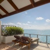 Виллы с прямым выходом к пляжу, располагаются в блоках на 2 или 4 номера, двуспальная кровать, гостиная зона с креслами, ванная комната с душем, меблированная терраса, вид на океан, план номера;