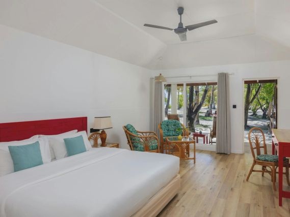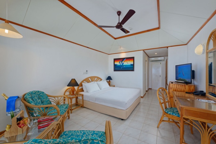 Расположены в самом сердце острова, на второй линии от пляжа, в блоках на 4 номера, двуспальная кровать, диван-кушетка, ванная комната с ванной и душем, терраса, вид на сад, план номера, реновация 2018 год;