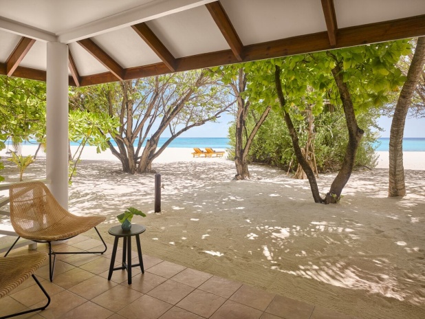 Пляжная вилла с прямым выходом к пляжу и видом на сторону заката расположены в блоках по 2 номера, двуспальная кровать, гостиная зона с диваном-кушеткой, ванная комната, меблированная терраса, вид на закат, панорамный вид на океан, реновация 2018 год;