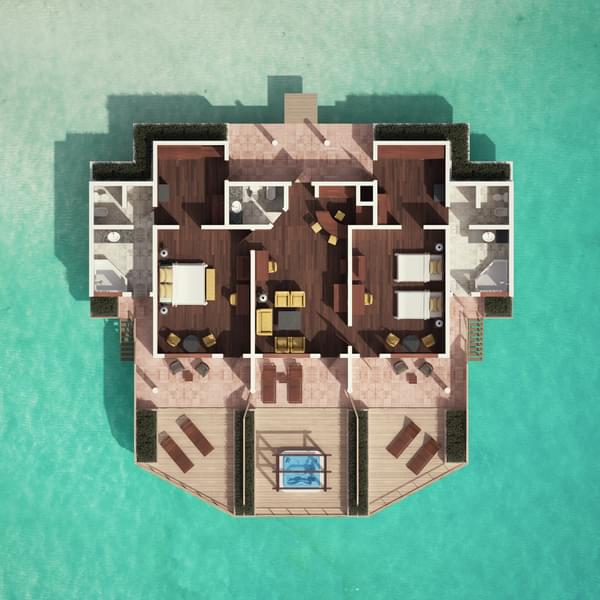 - 2 Bedrooms Over Water Suite (201 м², макс. 6 чел.).