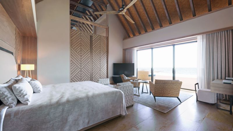 Береговая вилла, двуспальная кровать king-size или 2 двуспальные кровати queen-size, гостиная зона с креслами, окна от пола до потолка, ванная комната с ванной и душем, душ под открытым небом, терраса с открытым частным бассейном, обеденным павильоном, лежаками и гамаком, прямой выход на пляж;