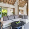 Береговая вилла, 3 спальни, отдельная гостиная комната с диваном и обеденным столом, окна от пола до потолка, 3 ванные комнаты, компанта для персонала, терраса с 2 открытыми частными бассейнами, лежаками и обеденной зоной на открытом воздухе, прямой выход на пляж, вид на океан;