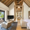 Расположены на сваях над водой, 2 спальни: двуспальная кровать king-size и 2 раздельные кровати и госстиными зонами с креслами, отдельная гостиная комната с диваном и обеденным столом, 2 ванные комнаты, терраса с лежаками, обеденным столом, персональным бассейном, прямой спуск в воду, вид на океан;