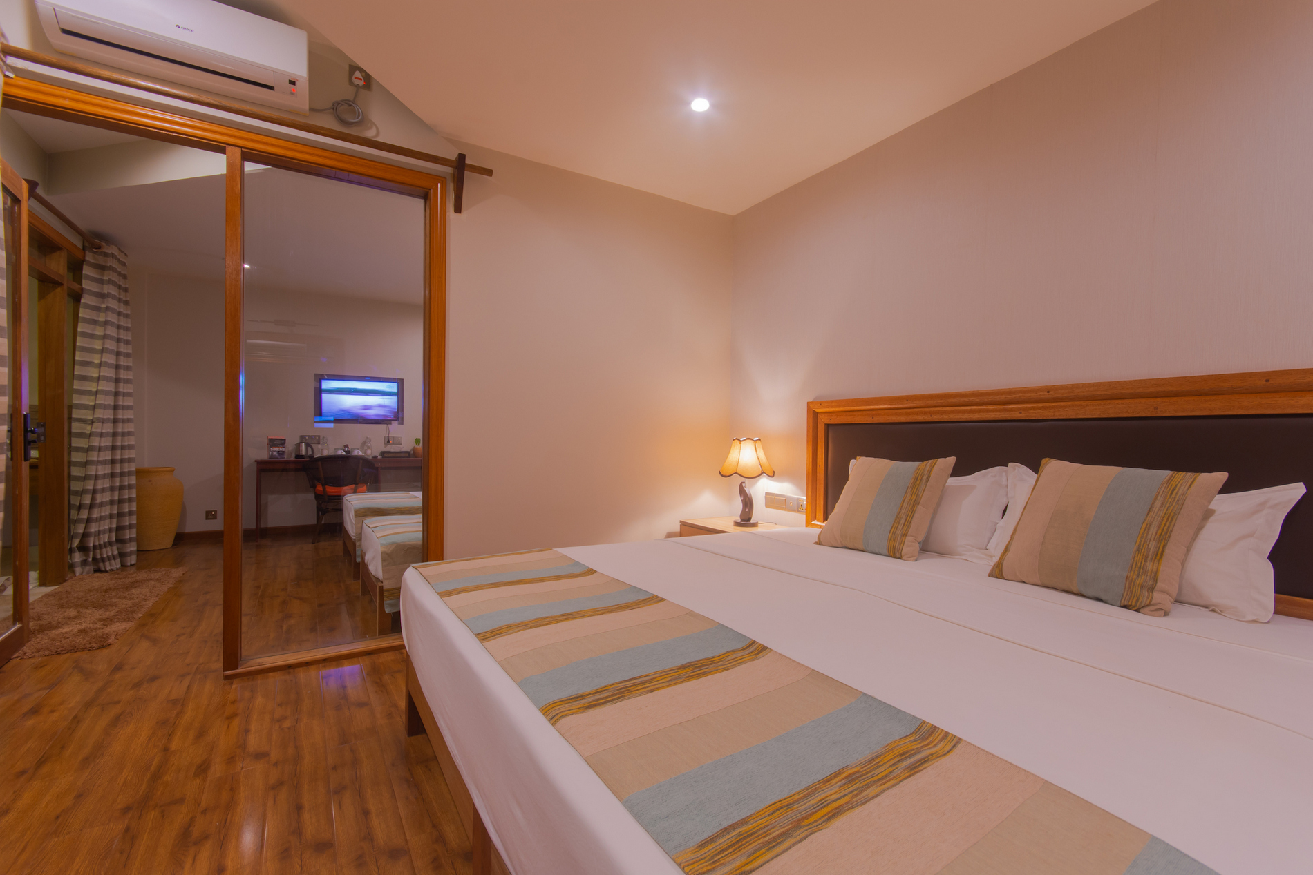 Поскольку отель расположен на населенном острове, действует сухой закон: все напитки – безалкогольные.