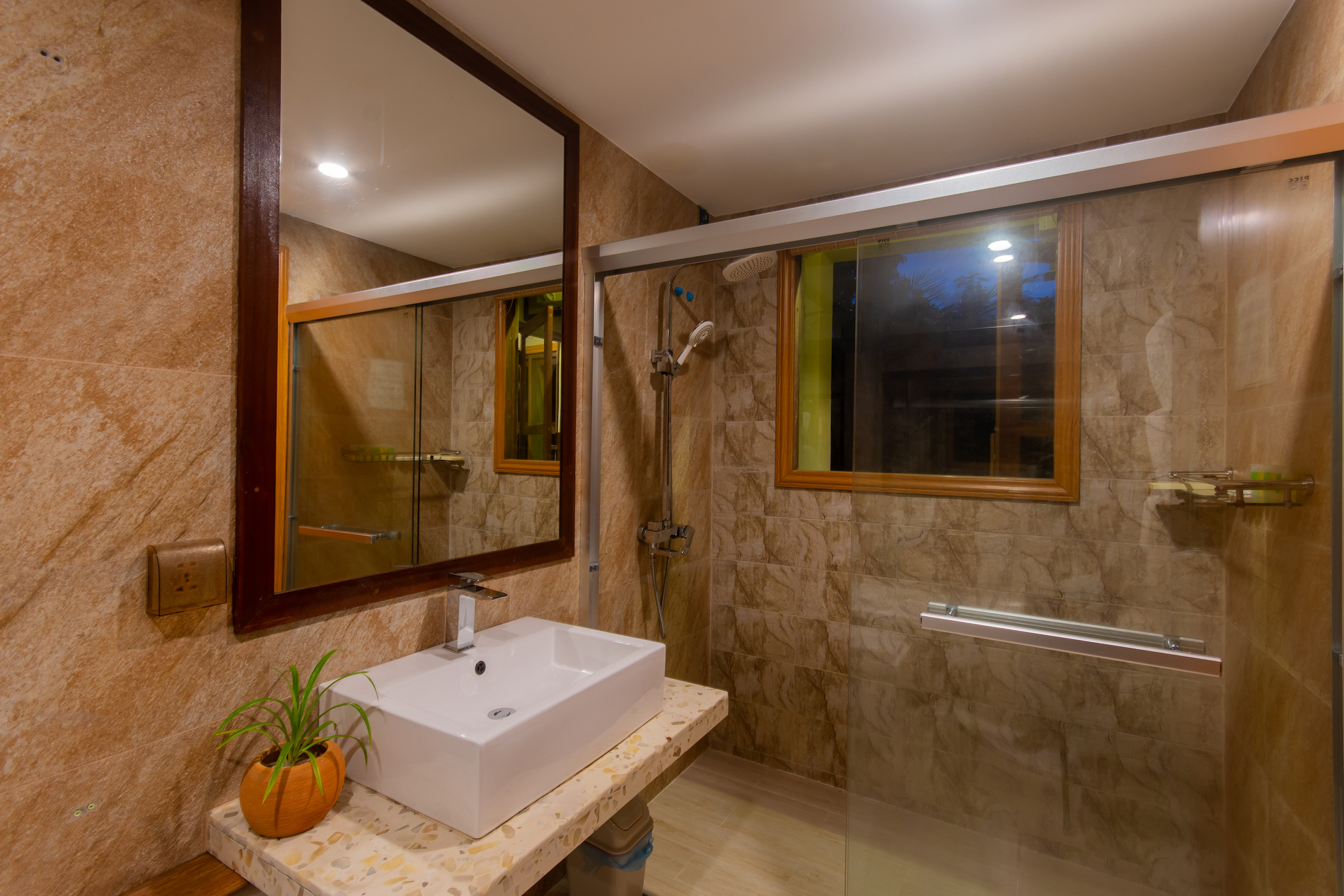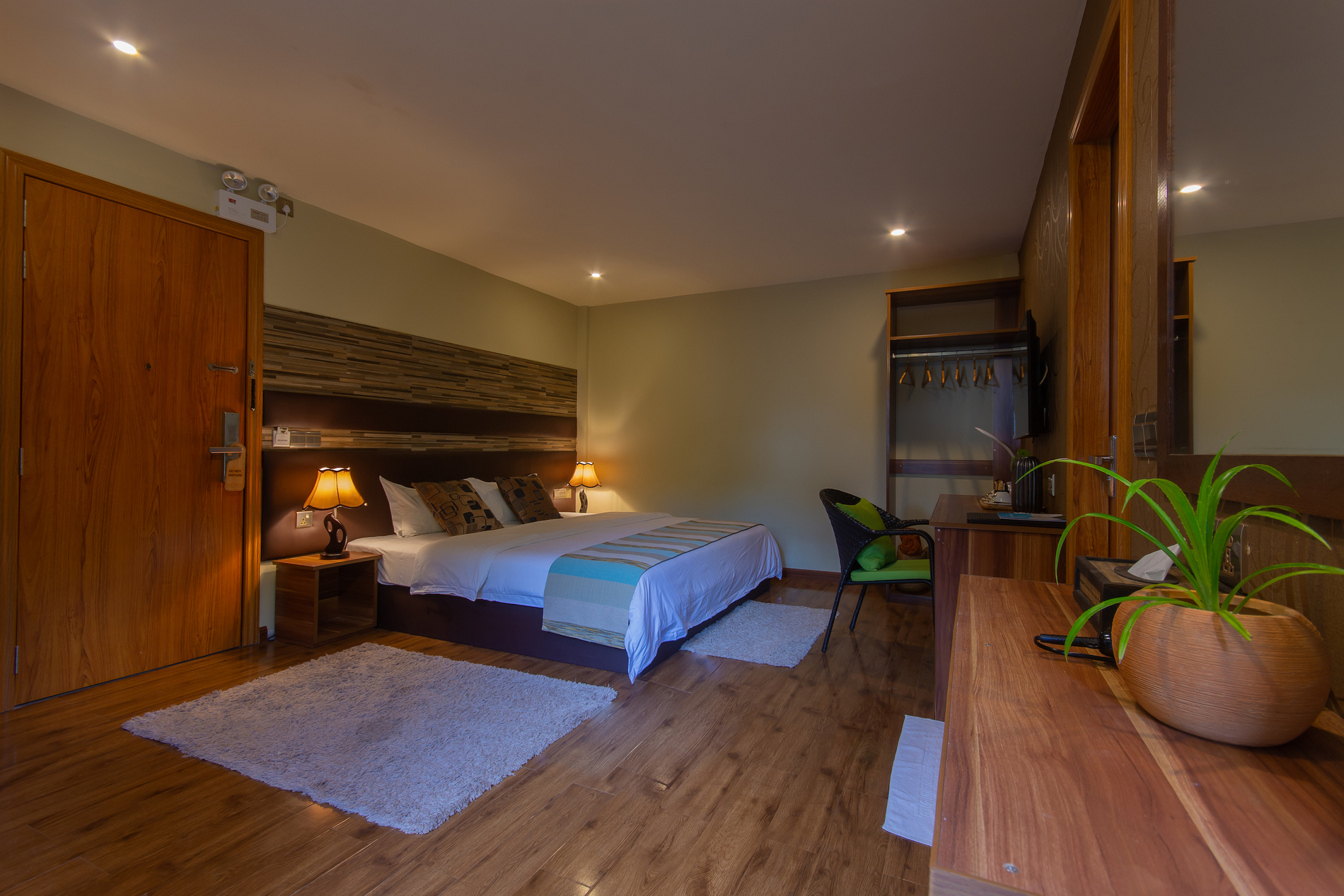 В номерах есть кондиционер, телевизор с плоским экраном и спутниковыми каналами, DVD-плеер и ванная комната с душем и феном.