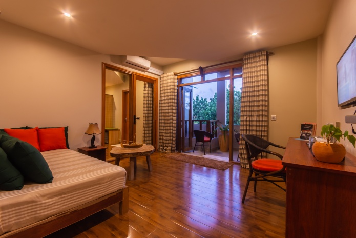 Отель расположен на населённом острове Укулас, атолл Северный Ари. Трансфер осуществляется на катере (90 минут в пути).
