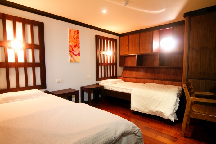 • 1 семейная каюта – 1 небольшая двуспальная кровать и 1 односпальная.