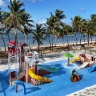Riu Turquoise расположен на первой линии и состоит из основного здания и дополнительных одно и двух-этажных корпусов. Отель подходит для семейного отдыха, на территории открытые бассейны для взрослых и детей, водные горки в детском бассейне, спа-центр, детский клуб и частный пляж.